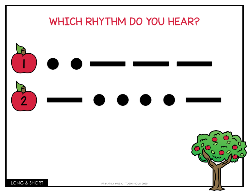 Like I said, it should be fun for them or that could have an adverse affect on their future music classes. (So, I totally get why many teachers opt out of teaching rhythm to their younger students!) But you don’t have to! Here are 5 resources that you can use in your classroom today to teach your scholars long and short sounds! I use these in my kindergarten classes but they would definitely work up until 2nd grade.