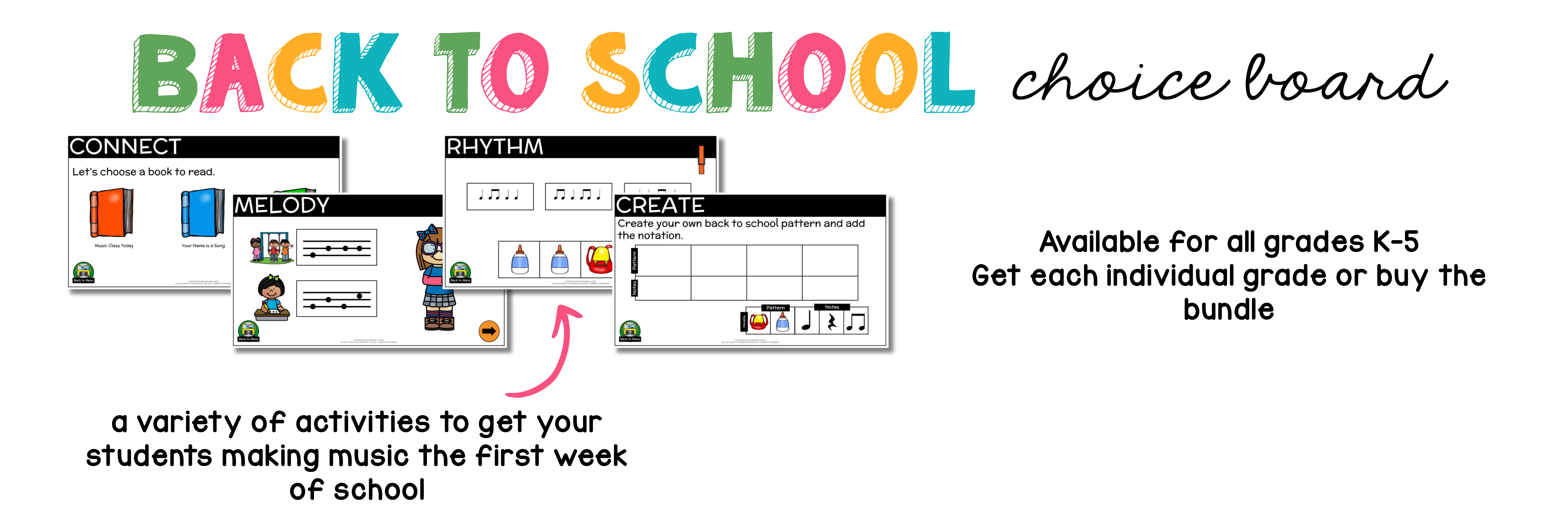Books are a great way to incorporate literacy into the music classroom. I always recommend getting the book and reading it to your students, but YouTube read-alouds work great as well. Here is a playlist of books for the first week.