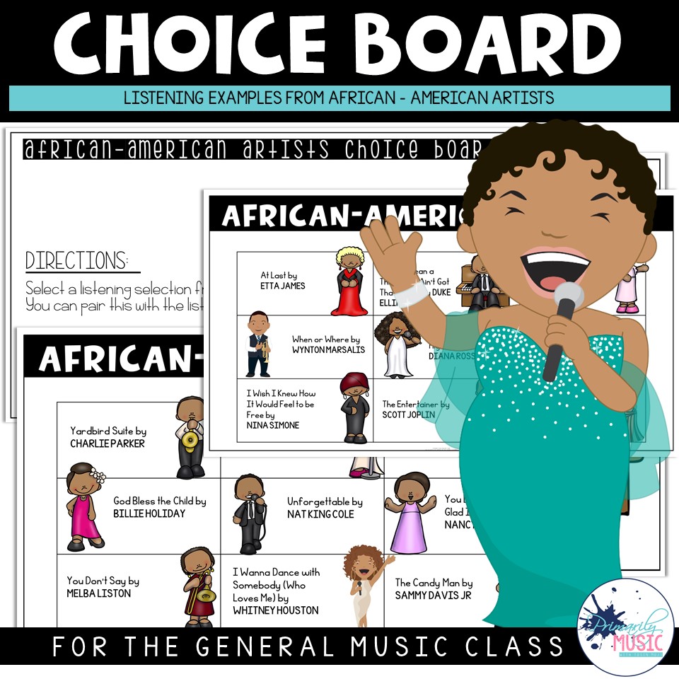 These Choice Boards are perfect to use for Black History Month or anytime time of the year! They pair perfectly with the Listening Worksheets. It’s a great way to expose students to various music from different African-American artists. There are 3 different choice boards in this set and a total of 27 different artists. Some of the artists are: